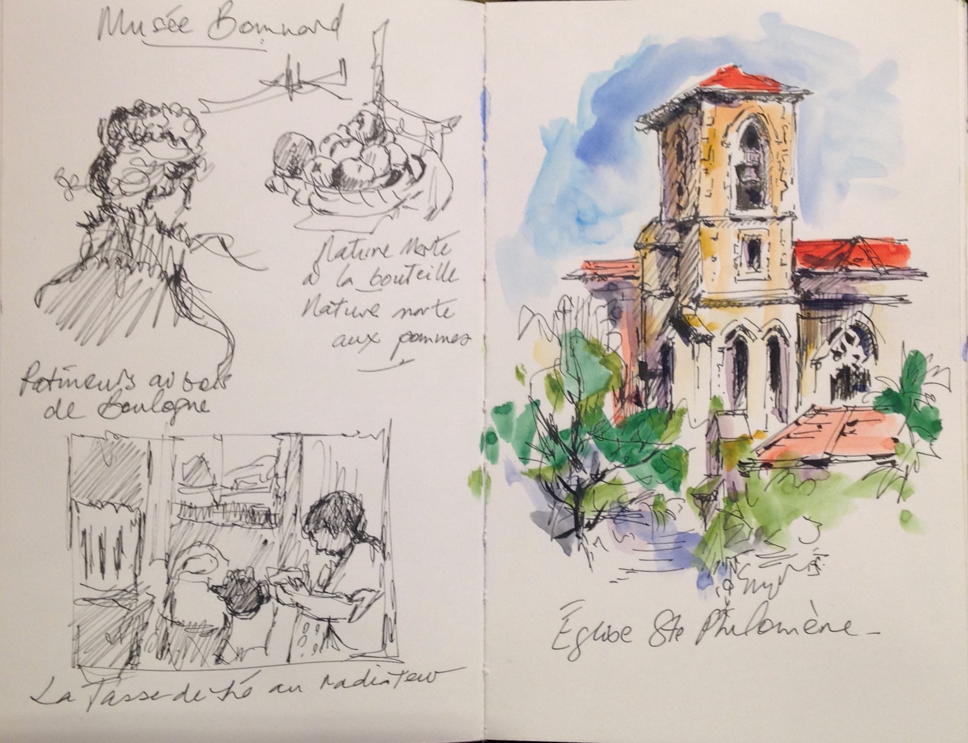 Sketches from Musée Bonnard, and of church in Le Cannet