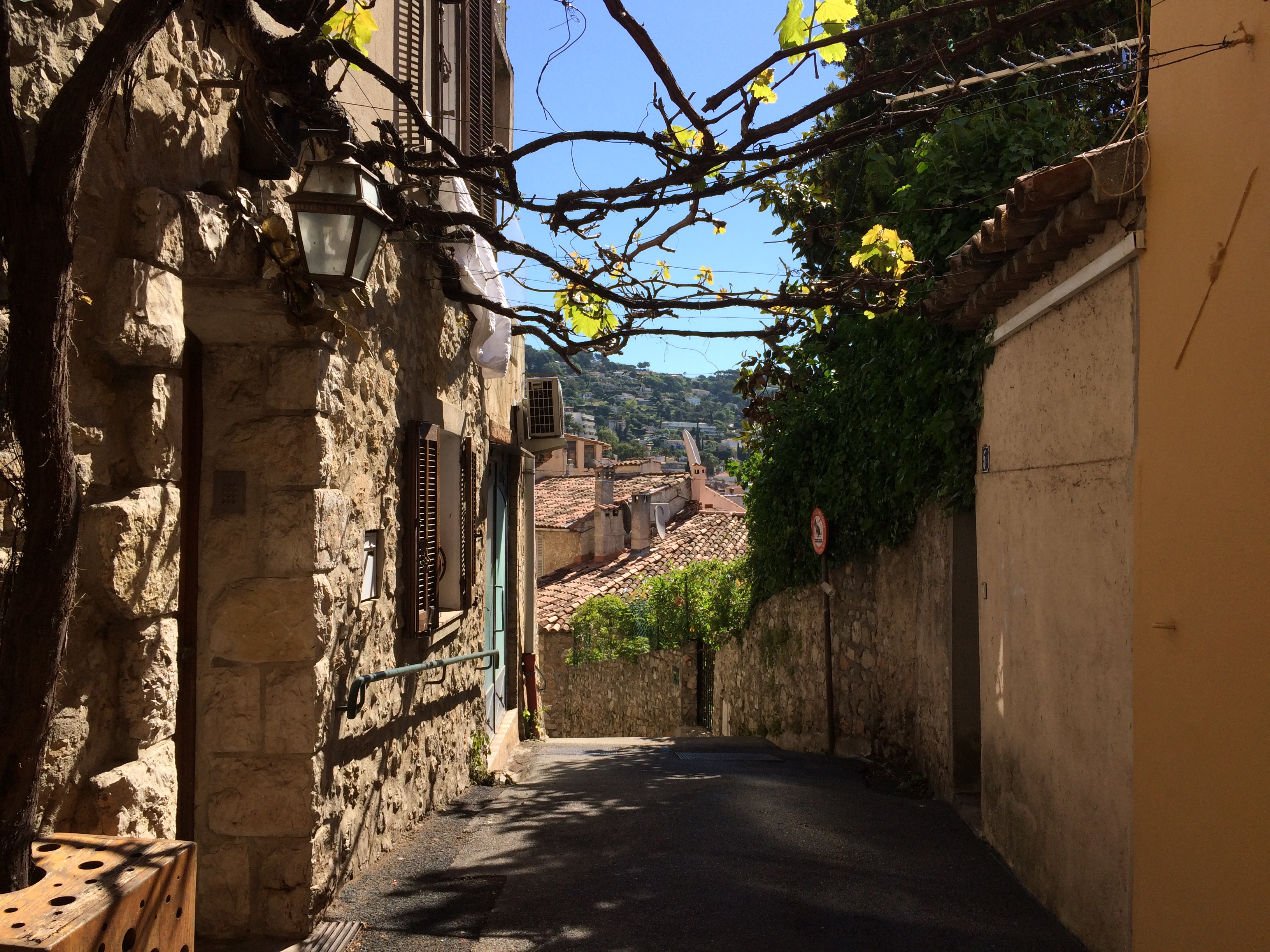 An evening hike up about 200 steps above the village to the trail of the Canal de la Siagne “sur les pas de Bonnard” completes our day. From the scenic overlook the Riviera stretches below from Cannes to the Esterel and out to the Lérins islands.