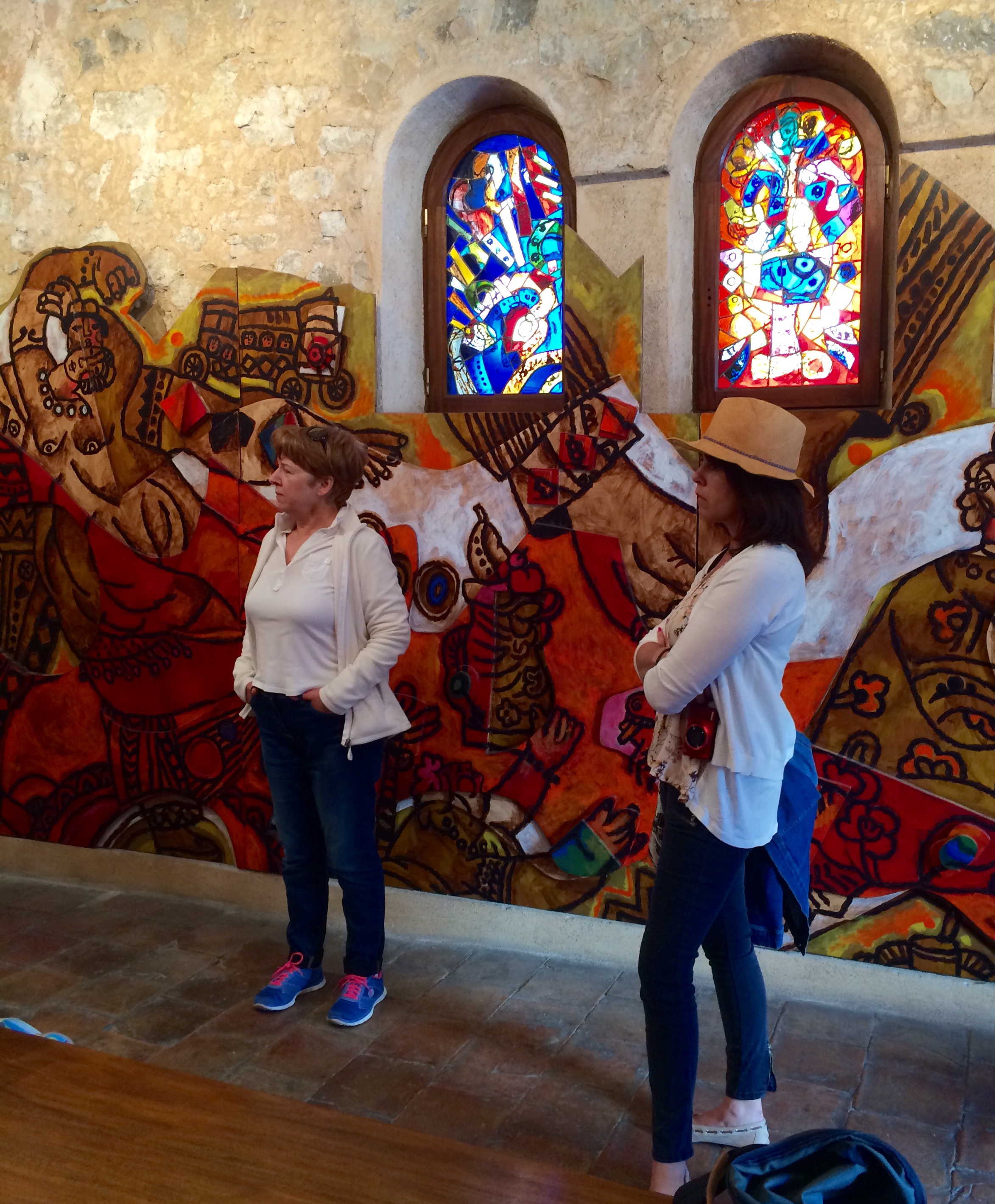 Walid has arranged some special visits for us – first to the atelier of the very talented artist Renato Manese, who tells us we must paint “du coeur et de la ventre” – “from the heart and from the gut” – and then by special arrangement into Chapelle Saint Sauveur to see the wonderful Tobiasse paintings and stained glass.