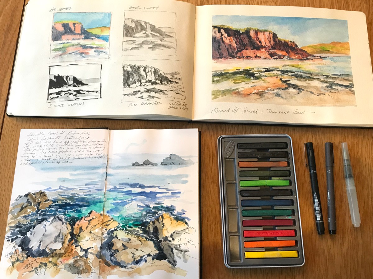 We will combine sketching with our painting practise – to study our subject in greater depth, as well as to allow us to sometimes travel light and take advantage of a break in the weather. If time is short, we can take a walk with our sketchbooks, make notes and studies of different subjects, then continue to develop our paintings in the comfort of the Artform Studio.